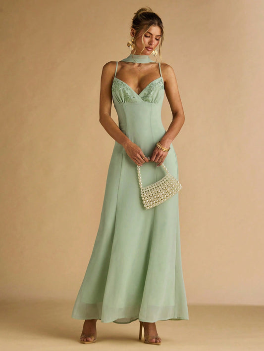 Sage Strass Stones & Chiffon Wedding Guest Dress